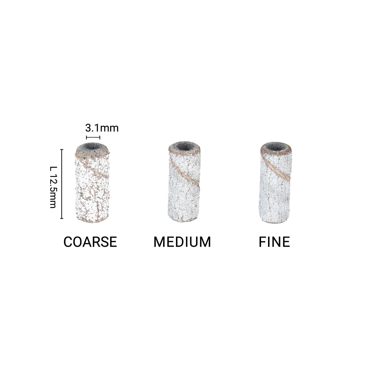 Grits: Fine #240 Grit, Medium #150 Grit, Coarse # 100 Grit.